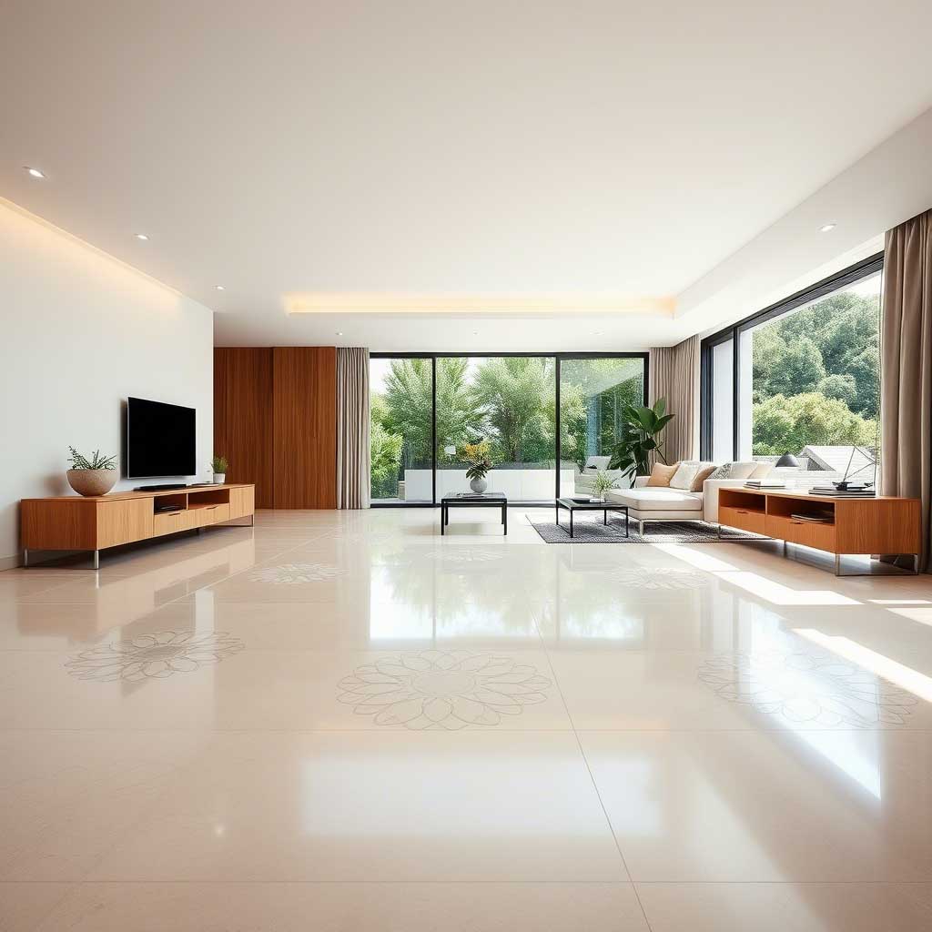 Le choix des matériaux pour un carrelage pour salon contemporain suit des tendances qui privilégient la simplicité et le style épuré :