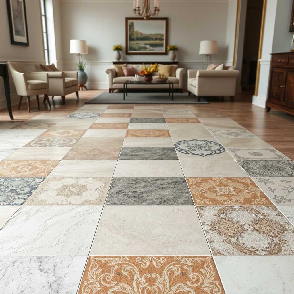 - Carrelage effet marbre : pour un aspect luxueux et sophistiqué, parfait pour les pièces comme les salons ou les cuisines.