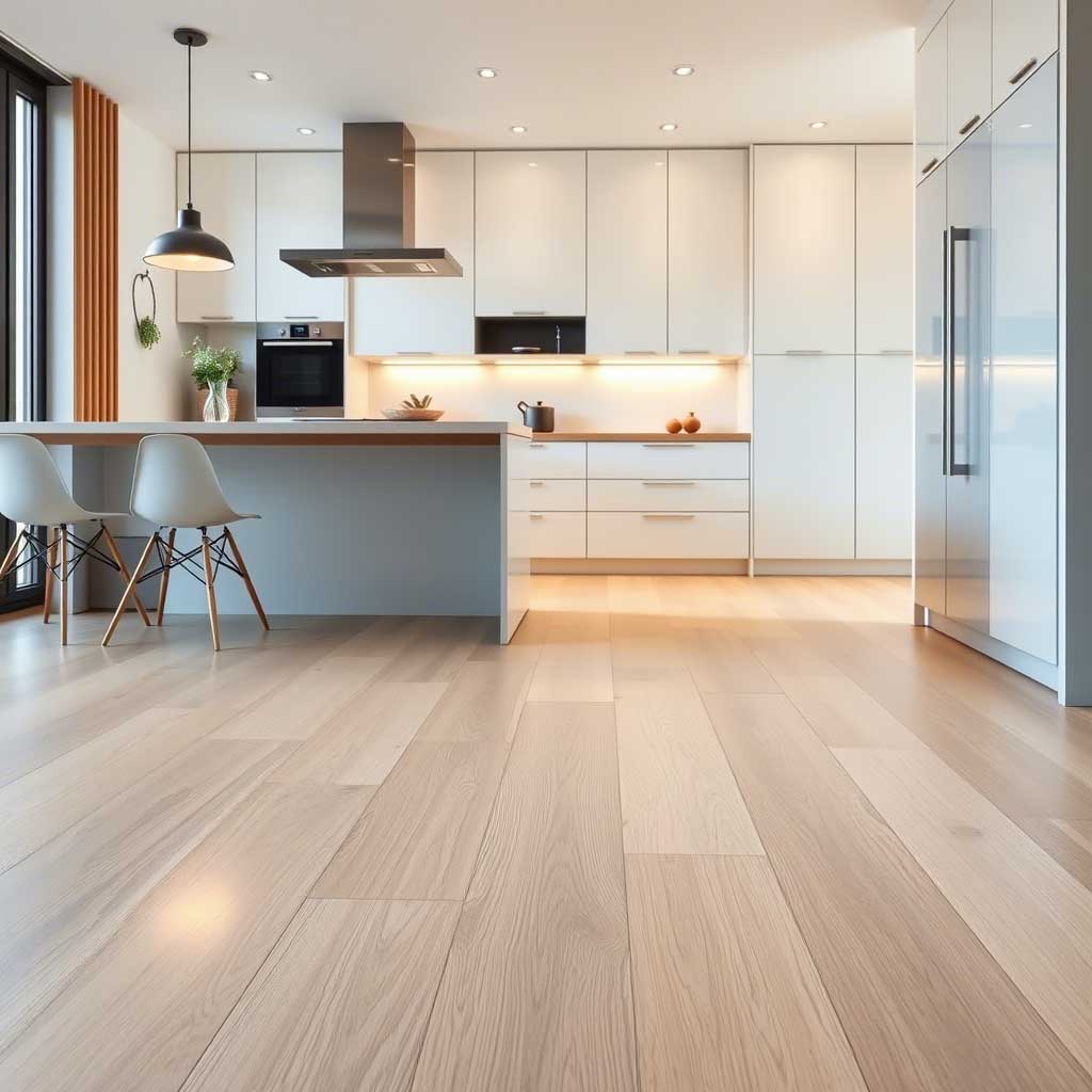 - Le parquet vitrifié : il offre une protection renforcée contre l’eau, les taches et les rayures. Facile à entretenir, il convient aux familles comme aux passionnés de cuisine.